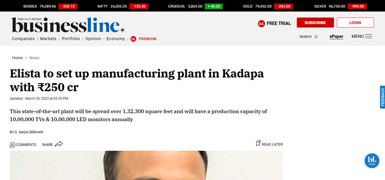 Elista to set up manufacturing plant in Kadapa with ₹250 cr