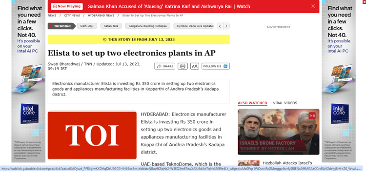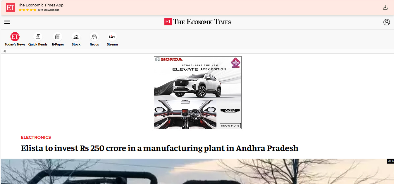 Elista to set up two electronics plants in AP
