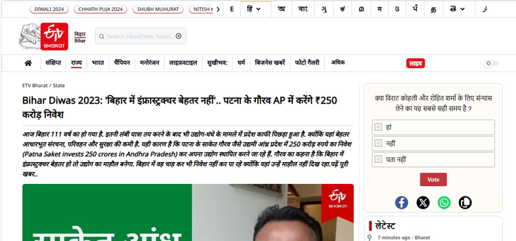 Bihar Diwas 2023: 'डबहार में इोंफ्रास्ट्रक्चर बेहतर नही ों'.. पटना के िौरव AP मेंकरेंिे₹250 करोड़ डनवे