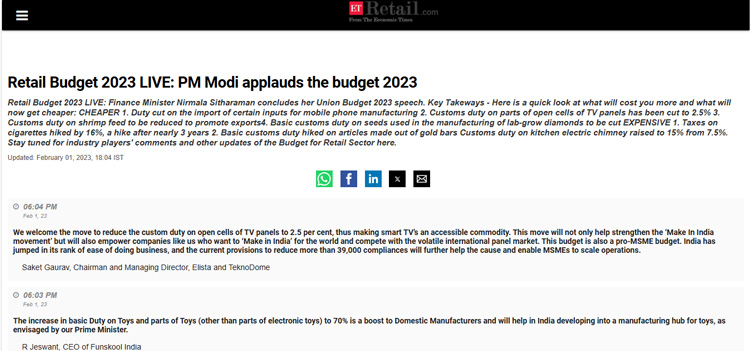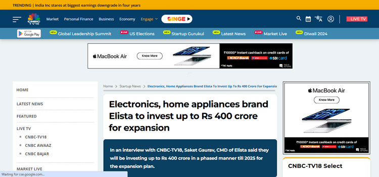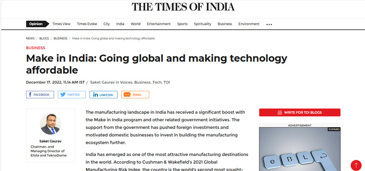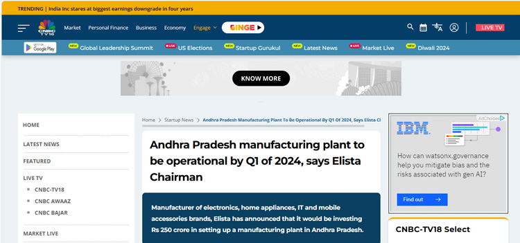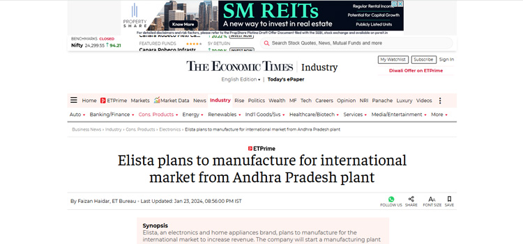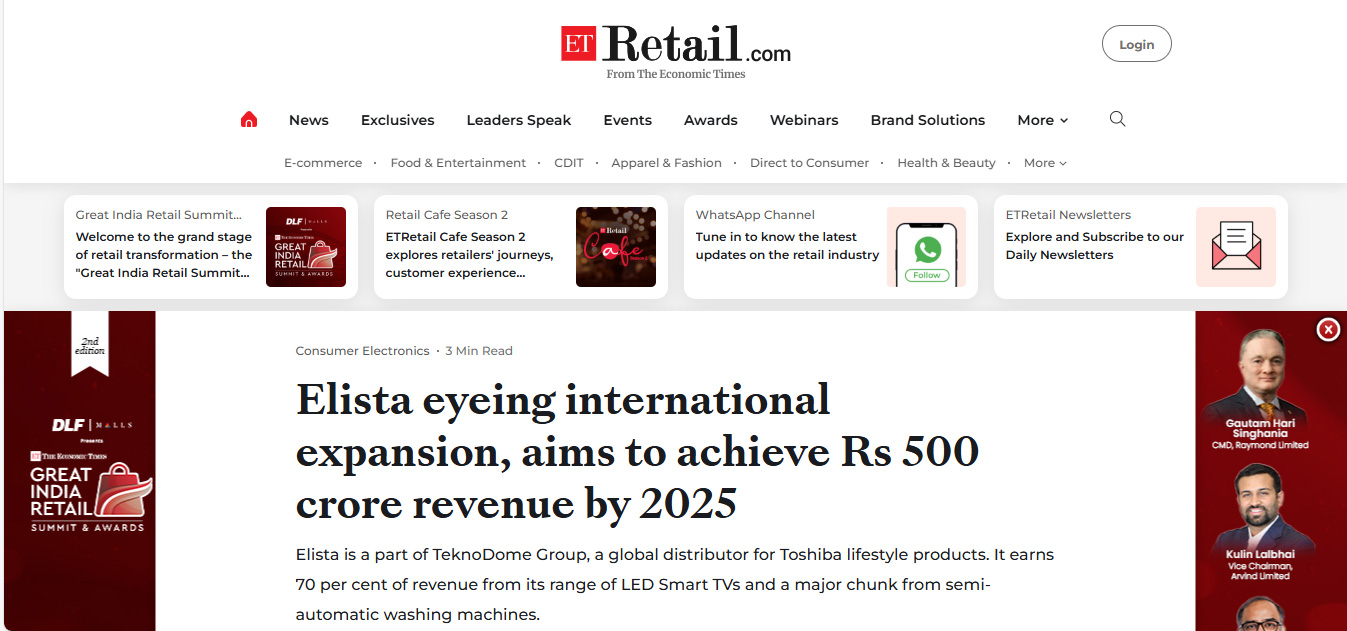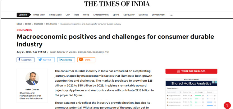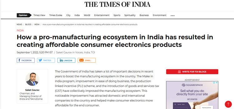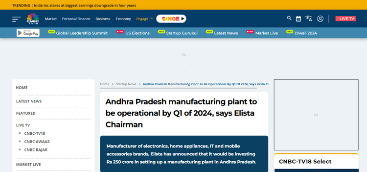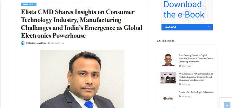 Elista CMD Shares Insights on Consumer Technology Industry, Manufacturing Challanges and India’s Emergence as Global Electronics Powerhouse