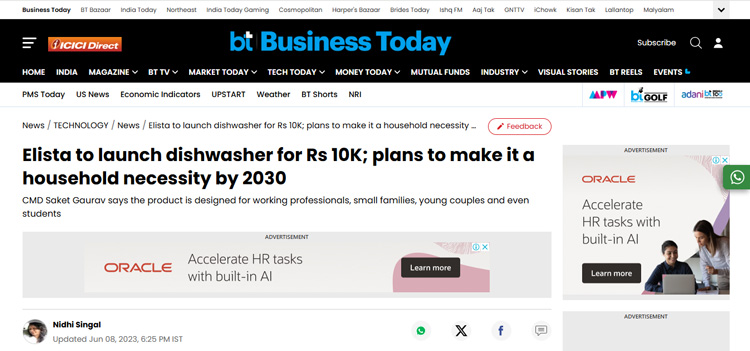 Elista to launch dishwasher for Rs 10K; plans to make it a household necessity by 2030