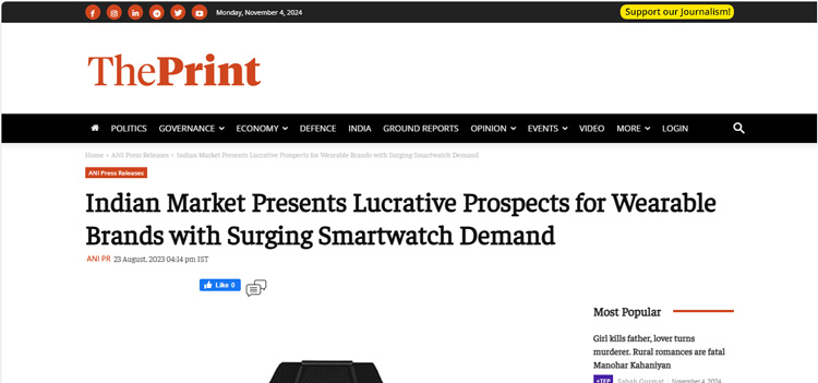 Indian Market Presents Lucrative Prospects for Wearable Brands with Surging Smartwatch Demand