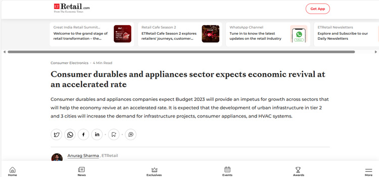 Consumer durables and appliances sector expects economic revival at an accelerated rate