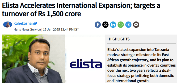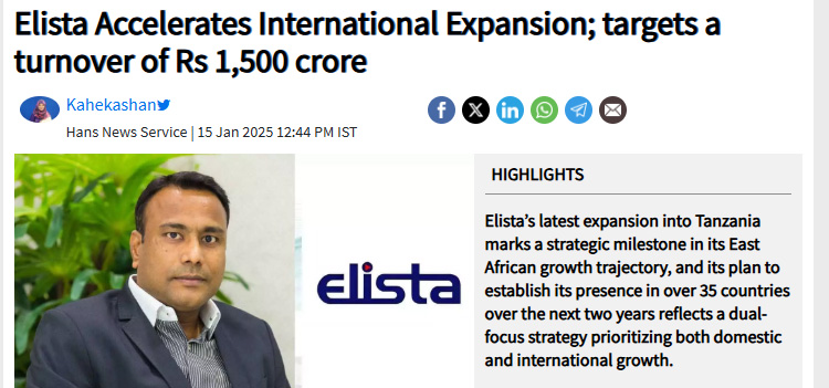 Elista Accelerates International Expansion; targets a turnover of Rs 1,500 crore