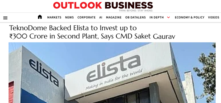 TeknoDome Backed Elista to Invest up to ₹300 Crore in Second Plant, Says CMD Saket Gaurav