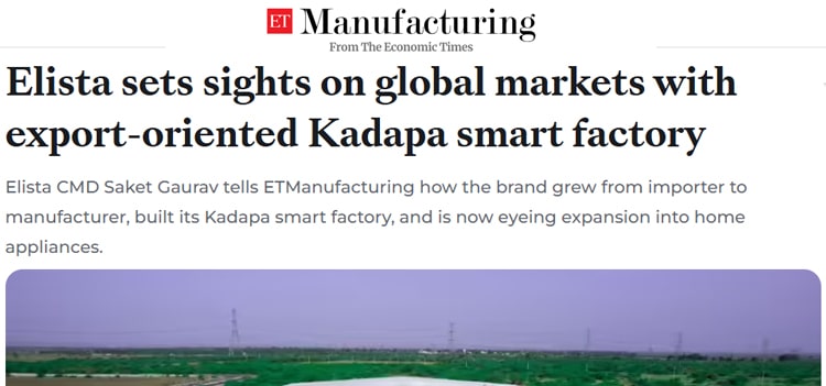 Elista sets sights on global markets with export-oriented Kadapa smart factory